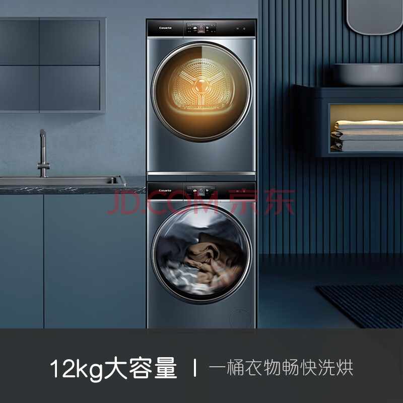 商品相册:卡萨帝(Casarte)纤诺和美洗烘套装纤诺5月光宝盒12公斤滚筒洗衣机+家用热泵烘干机 平嵌D12L5LU1+12FL5TU1第