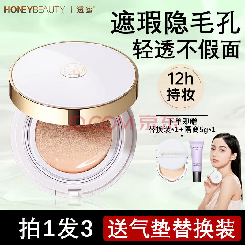 商品相册:透蜜气垫粉底液bb霜隔离遮瑕三合一素颜霜彩妆美妆化妆品男女生日礼物第1张/共6