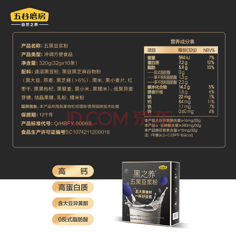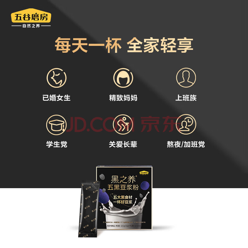 商品相册:五谷磨房黑之养五黑豆浆粉即冲早餐豆浆粉320g第