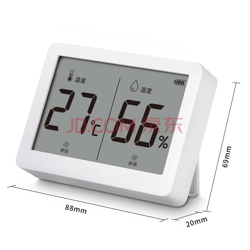 商品相册:得力室内温湿度表 LCD\电子温湿度计老人儿童礼物生日礼品带背光功能 婴儿房办公用品 白色LE501-WH第