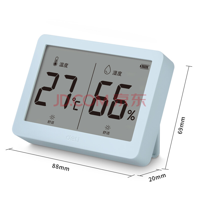 商品相册:得力室内温湿度表 LCD\电子温湿度计老人儿童礼物生日礼品带背光功能 婴儿房办公用品 蓝色LE501-TQ第