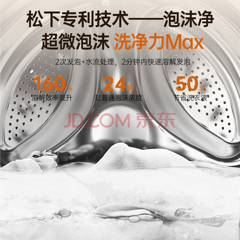 商品相册:松下(Panasonic)白月光2.0 滚筒洗烘一体 10KG全自动洗衣机 超薄全嵌滚筒洗衣机 XQG100-6E1AK第