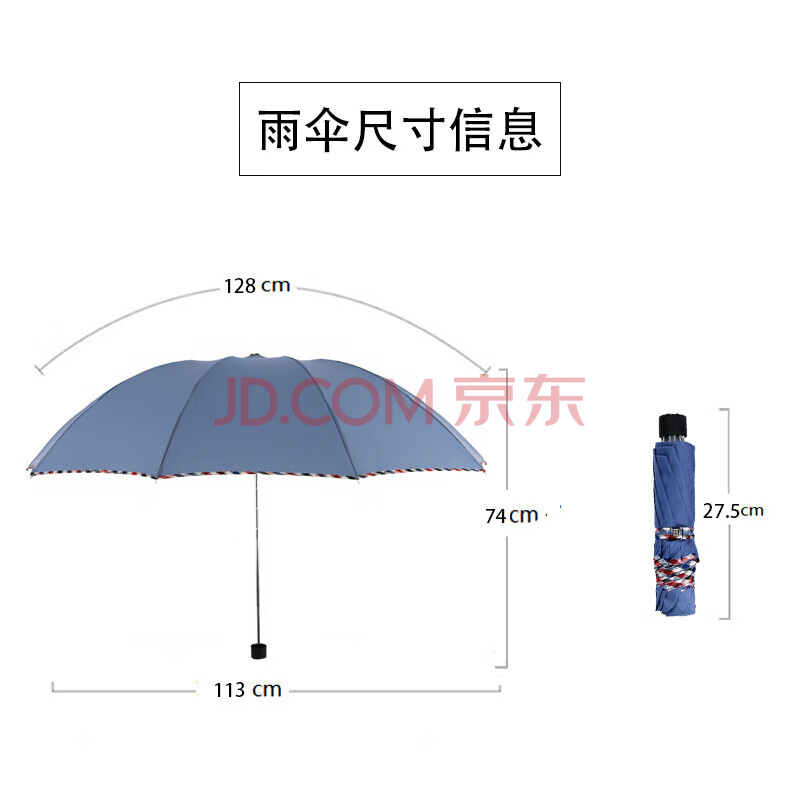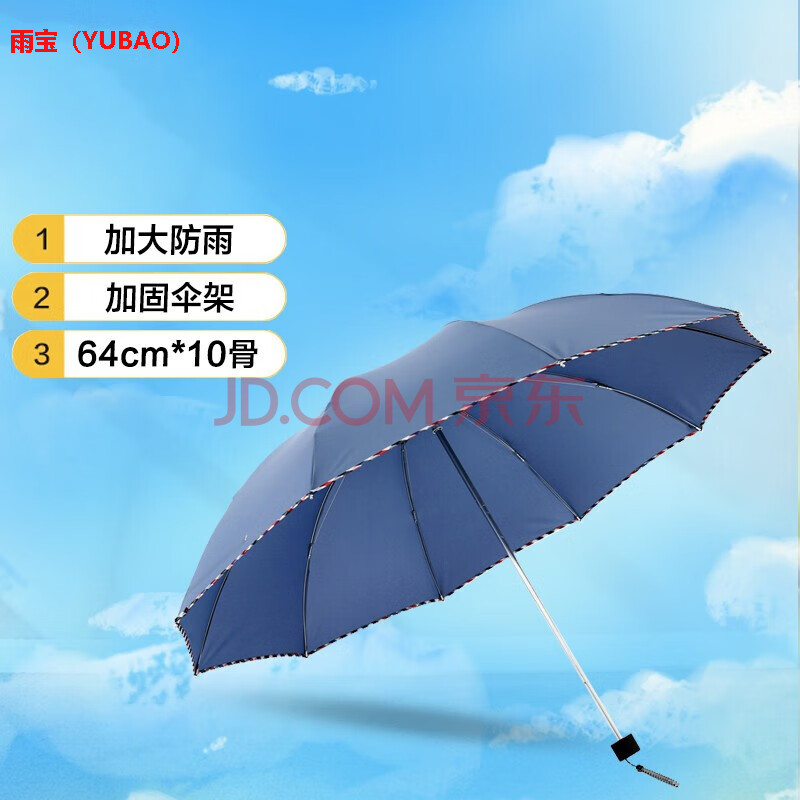商品相册:雨宝(YUBAO)加大加固64cm*10骨三折晴雨商务伞3311E碰全藏青第