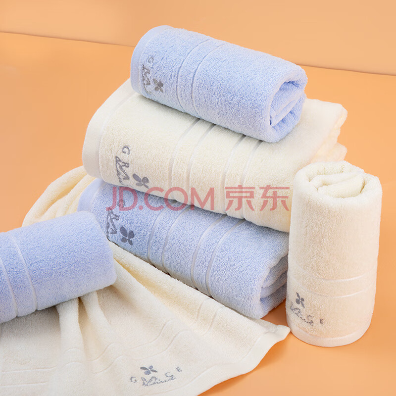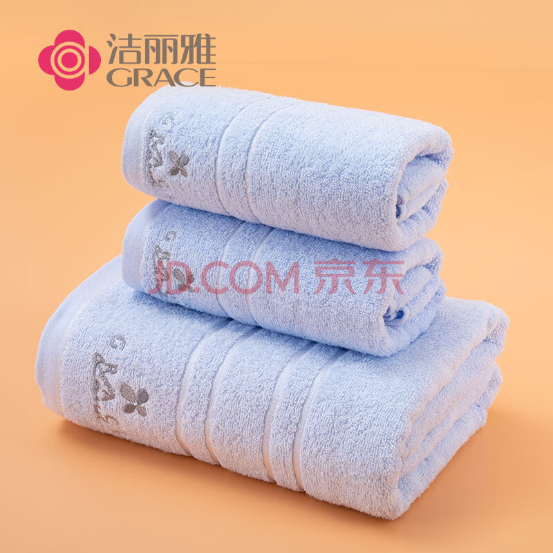 商品相册:洁丽雅(Grace)纯棉抗菌毛巾浴巾三件套吸水男女家用毛浴巾 毛巾*2+浴巾*1 兰色第