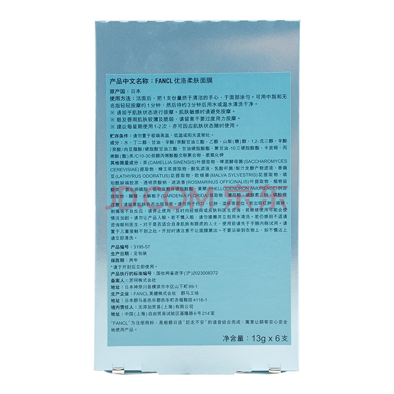 商品相册:芳珂(FANCL)优洛柔肤面膜13g*6 保湿修护护肤品部分效期26年9月生日礼送女友第