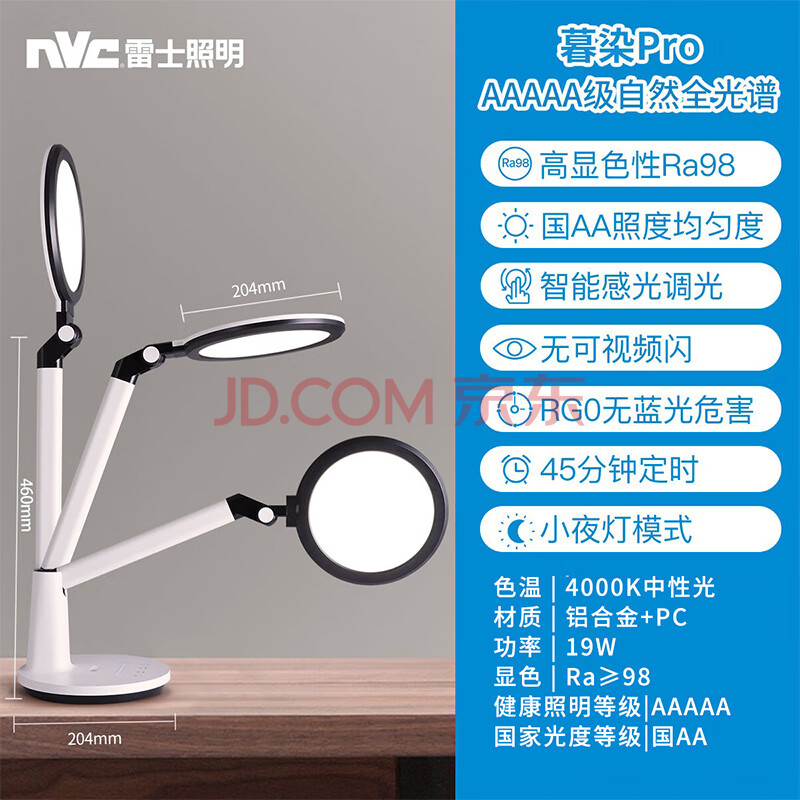 商品相册:雷士(NVC)AAAAA健康减蓝光护眼学习读写家用台灯感光带小夜灯和定时暮染pro第