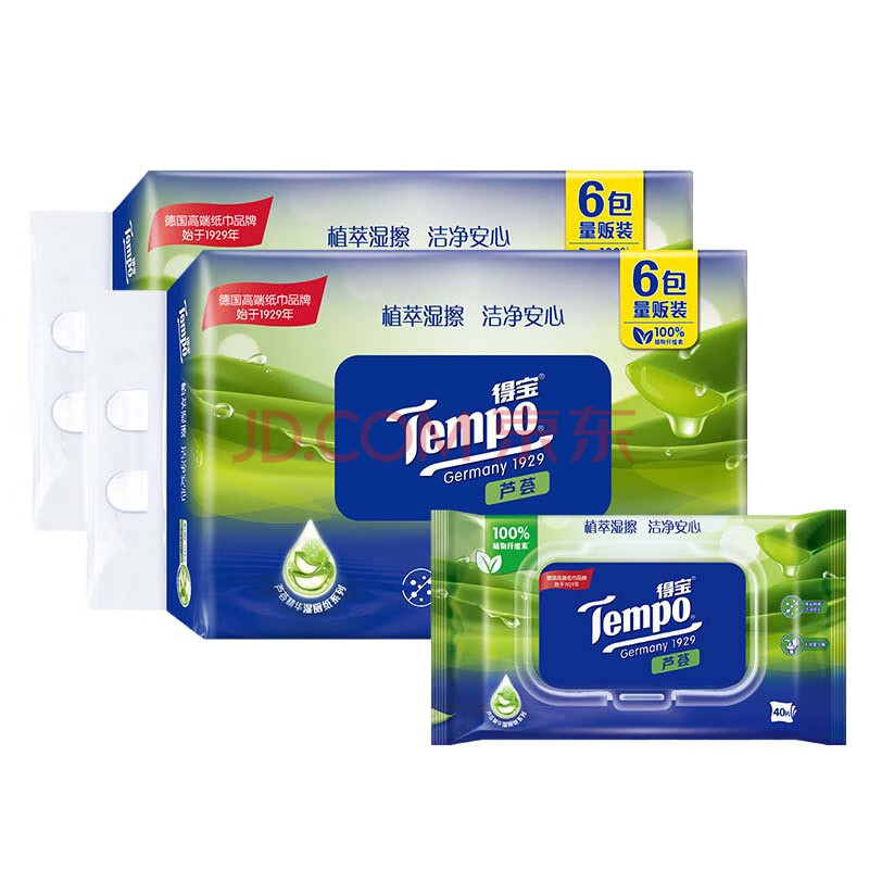 商品相册:得宝(Tempo) 湿厕纸 芦荟植萃精华480片 (12包*40片) 清洁湿纸巾湿巾第