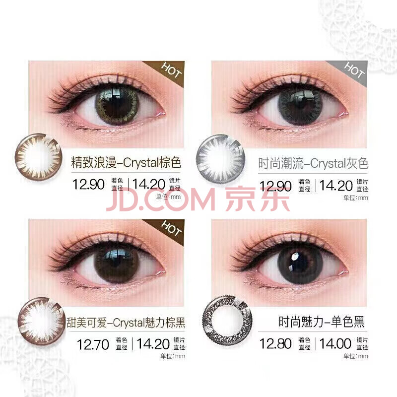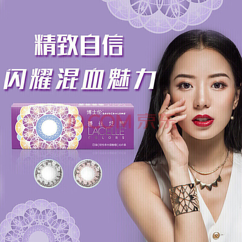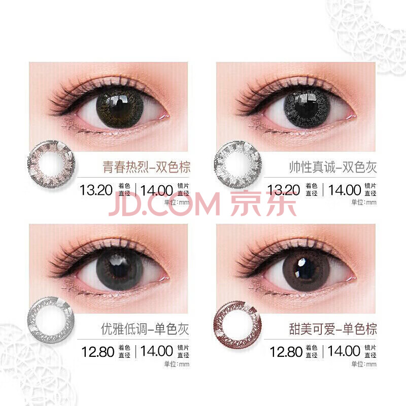商品相册:博士伦美瞳 彩色隐形近视眼镜日抛小直径蕾丝炫眸30片双色棕325度第1张/共9