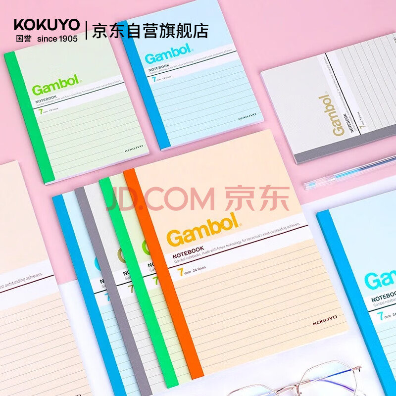商品相册:国誉(KOKUYO)A5无线装订本Gambol渡边学生办公笔记本子胶装本 7mm横线 60张/本 5本颜色随机 WCN-G5607第