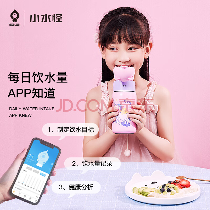 商品相册:SGUAI小水怪 ai智能保温杯带提绳吸管水杯大容量水杯学生3岁女孩六一儿童节礼物送男孩不锈钢儿童水杯 K3第