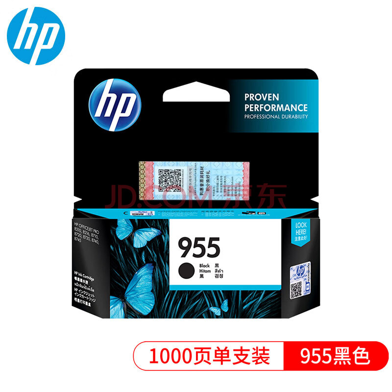 商品相册:惠普(HP)原装955黑色墨盒适用Pro8210/8216/8710/8720/8730/7720/7730/7740打印机墨水L0S60AA(1000页)第