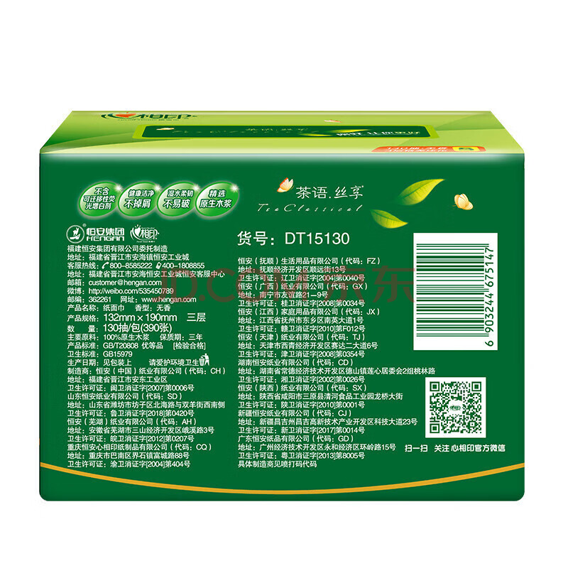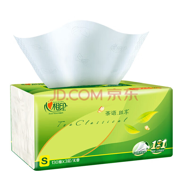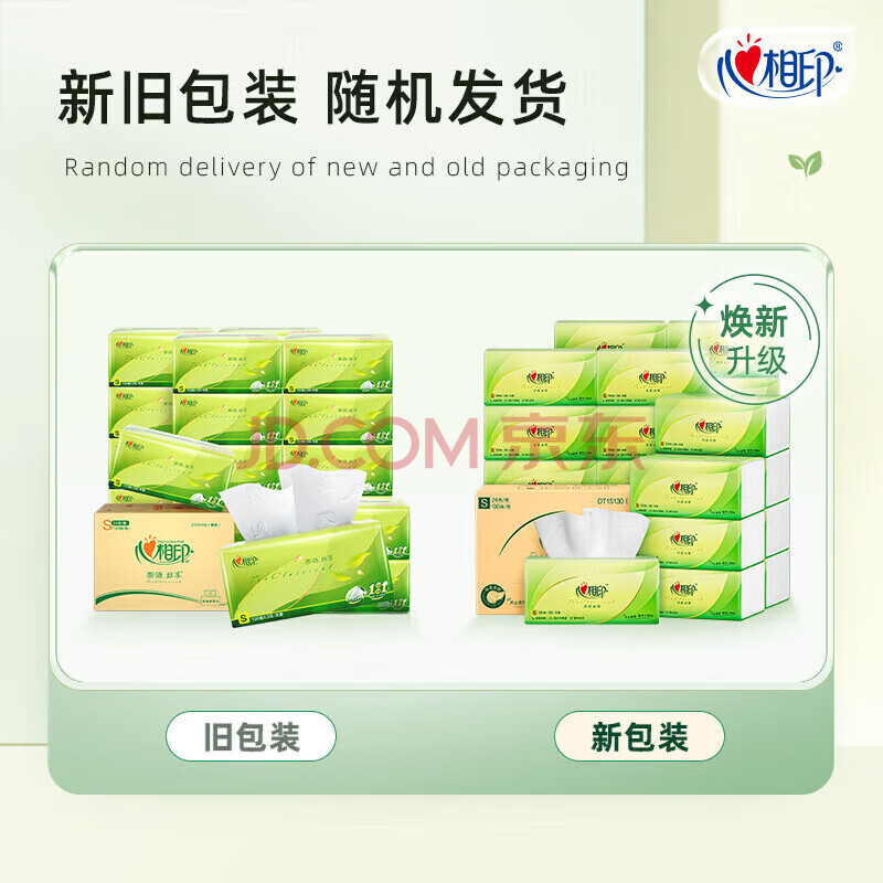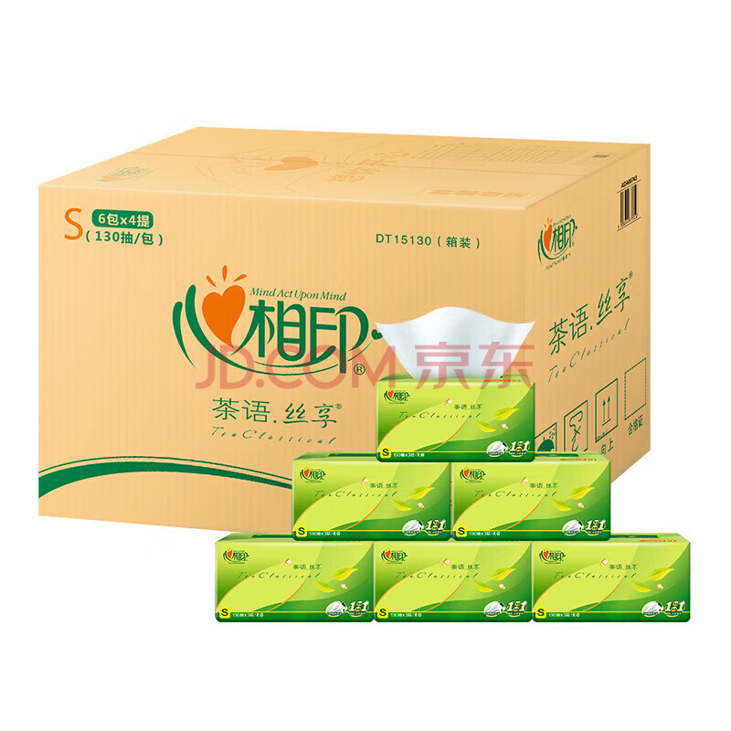 商品相册:心相印抽纸巾 茶语丝享无香130抽*24包面巾纸S码3层 新老包装随机发货第
