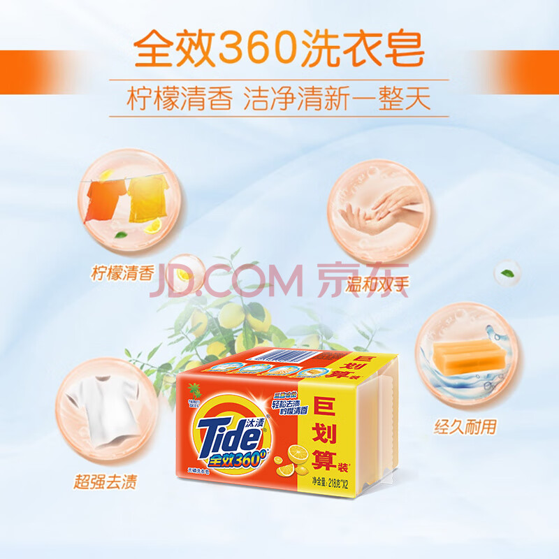商品相册:汰渍全效洁净洗衣皂柠檬218g*2块 温和去渍不伤手 肥皂透明皂第