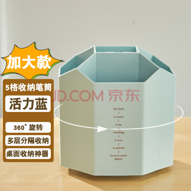 商品相册:三年二班5格创意个性旋转笔筒办公桌笔筒收纳盒多功能笔桶大容量办公桌面收纳盒储物盒蓝色可旋转款第