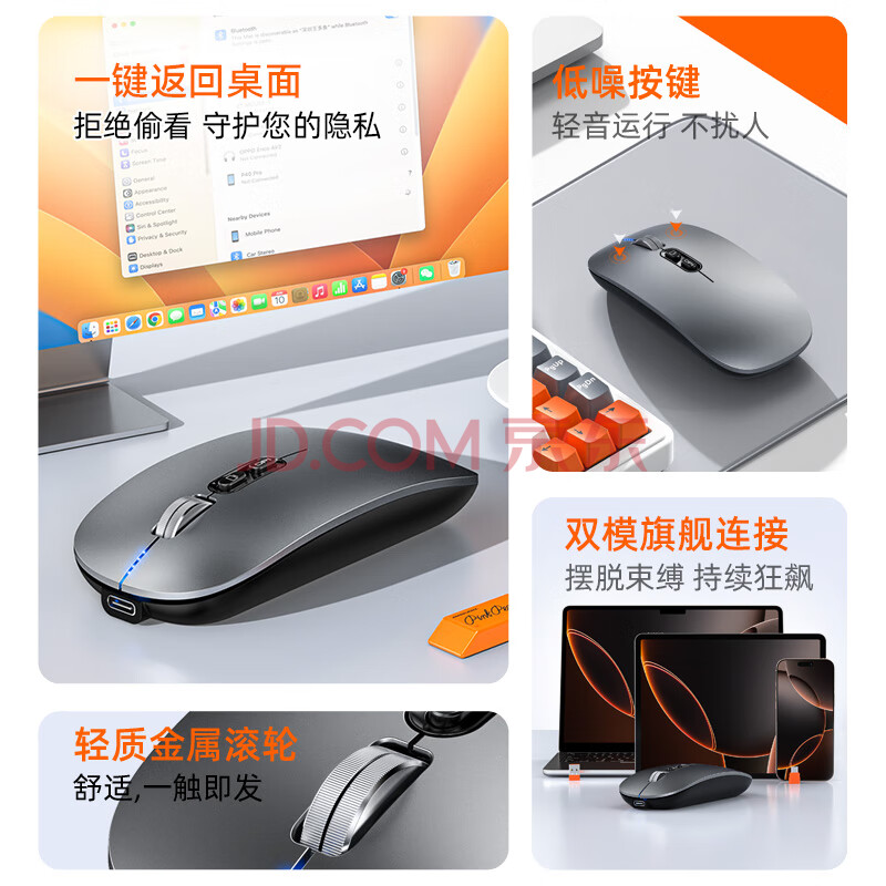 商品相册:斯泰克(stiger)适用于苹果华为无线鼠标蓝牙MateBookPadPro笔记本平板台式电脑办公无噪音便携可充电MacBookPro 第