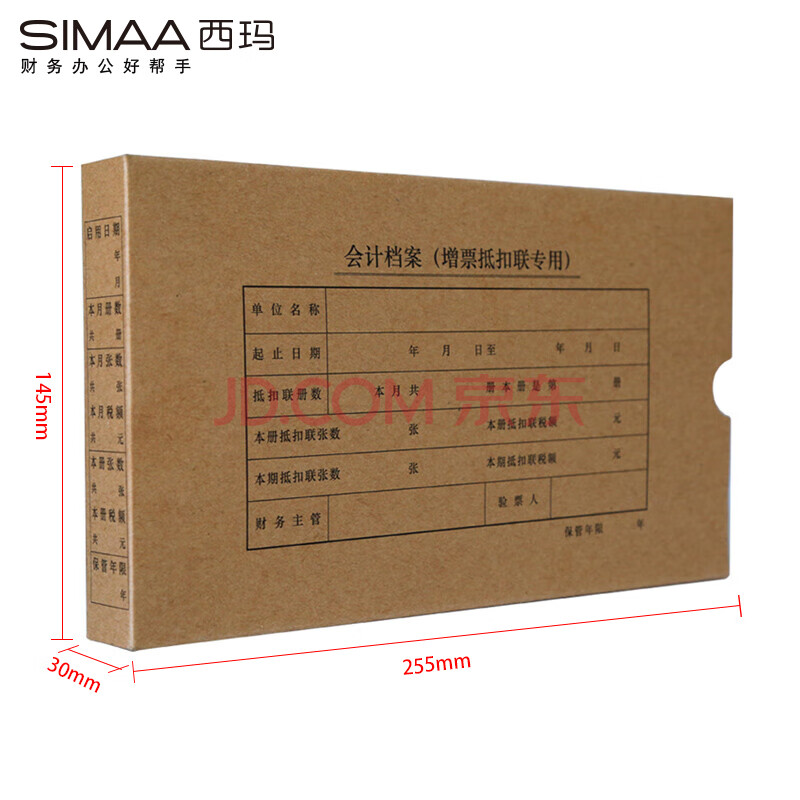 商品相册:西玛(SIMAA)增票抵扣联凭证盒专用 255*145*30mm 10个装 记账凭证封皮封面牛皮纸装订盒HZ323第