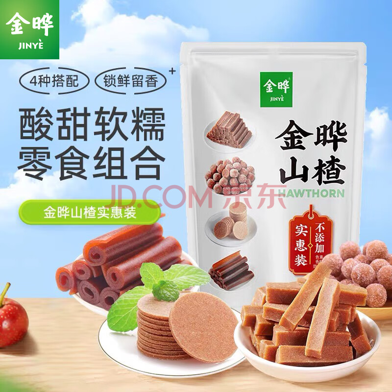 商品相册:金晔 休闲零食果丹皮山楂球山楂片山楂条混合装儿童零食700g/袋第1张/共7