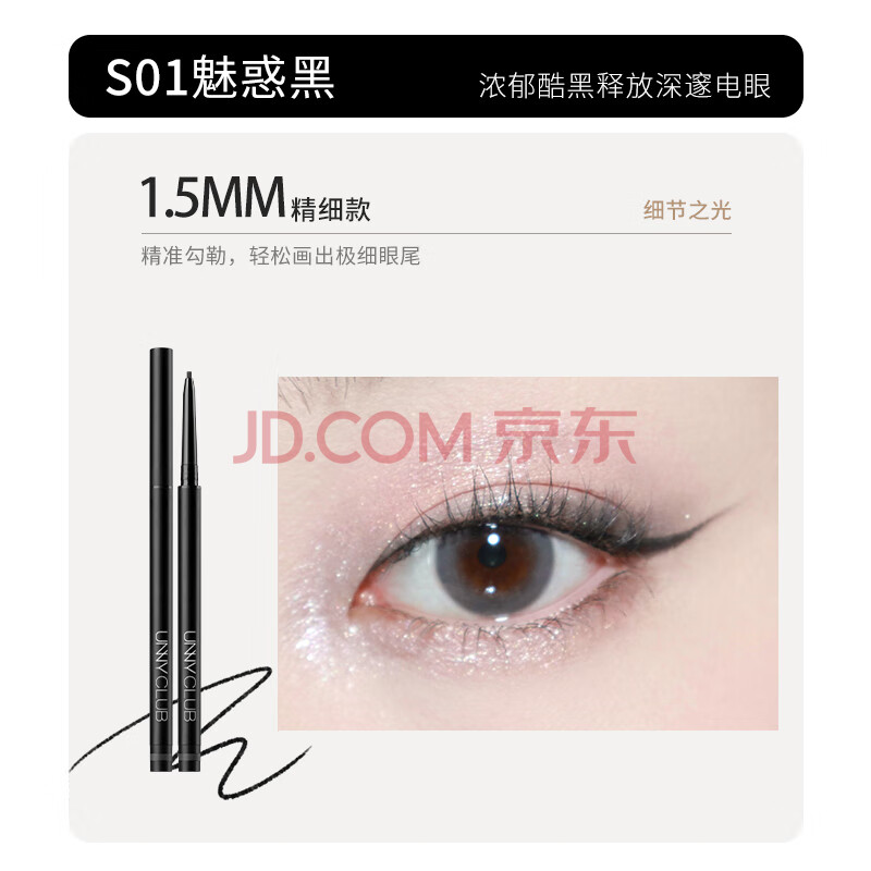 商品相册:悠宜(unny club)精细眼线胶笔S01魅惑黑色0.05g 1.5mm防水防汗持久不晕染极细第