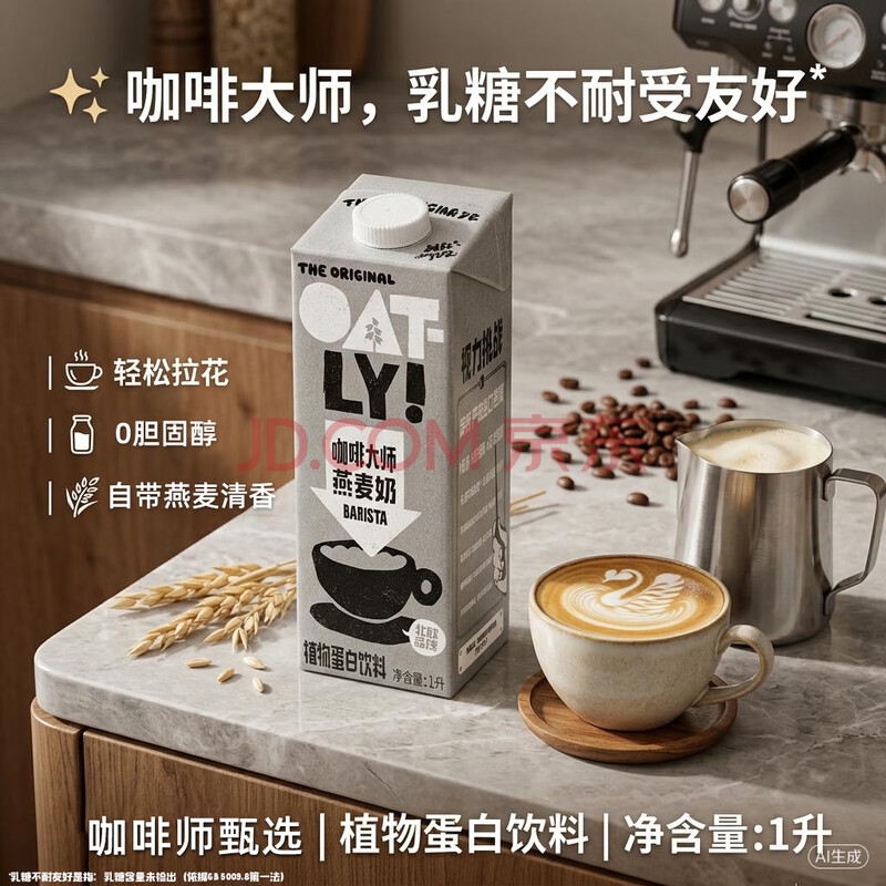 商品相册:OATLY噢麦力 咖啡大师燕麦奶 咖啡伴侣谷物植物蛋白饮料1L单支装第