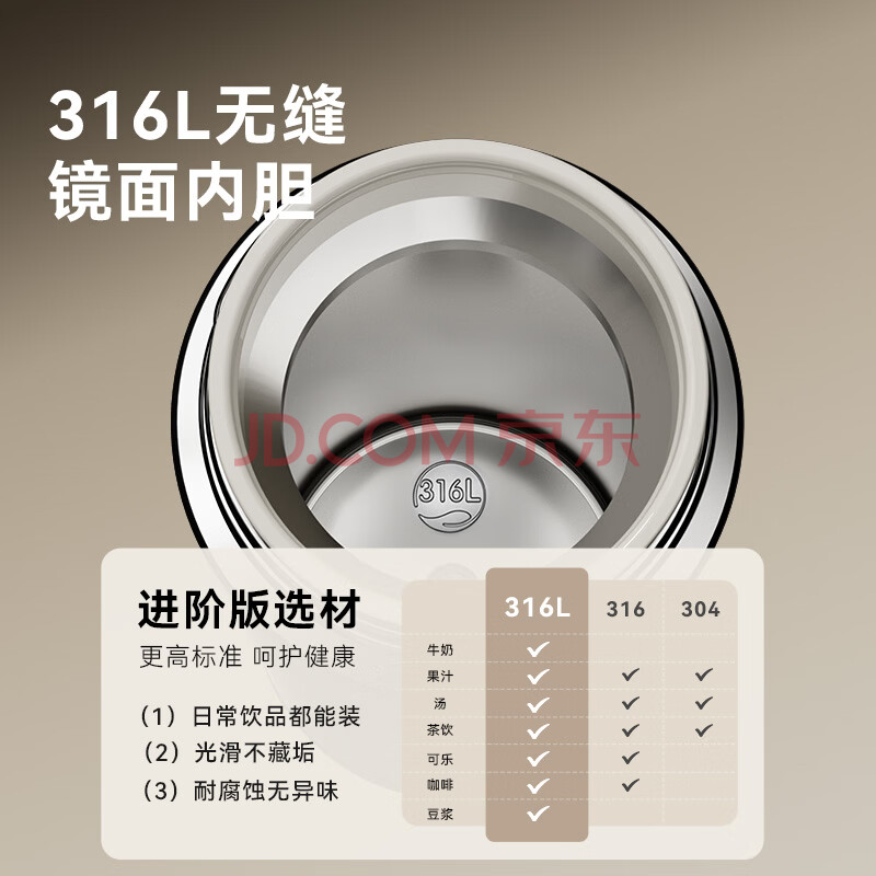 商品相册:京东京造 保温杯 水杯男士女儿童咖啡 316L不锈钢【无缝内胆】黑500ml第