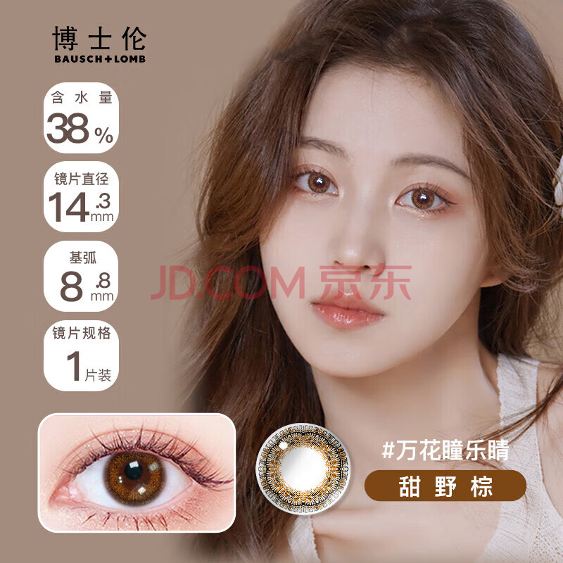 商品相册:博士伦进口美瞳女 彩色隐形眼镜万花瞳乐睛半年抛1片装 甜野棕375度第