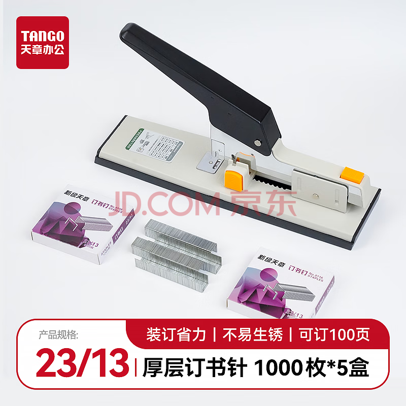 商品相册:天章办公(TANGO)23/13厚层订书钉/订书针/可订100页 加厚订书针大号 5盒装 适用23/13 23/23重型订书机第