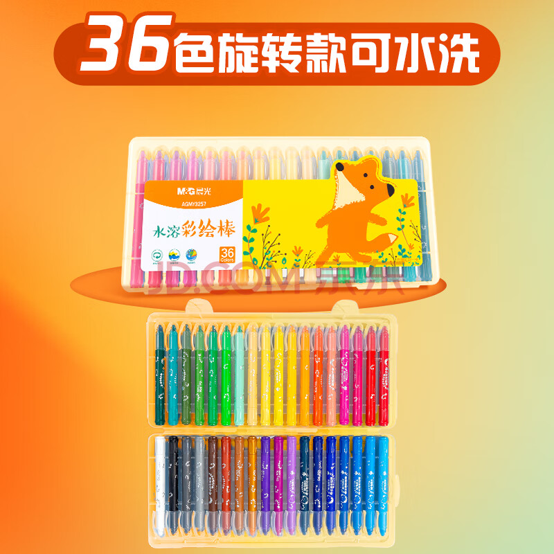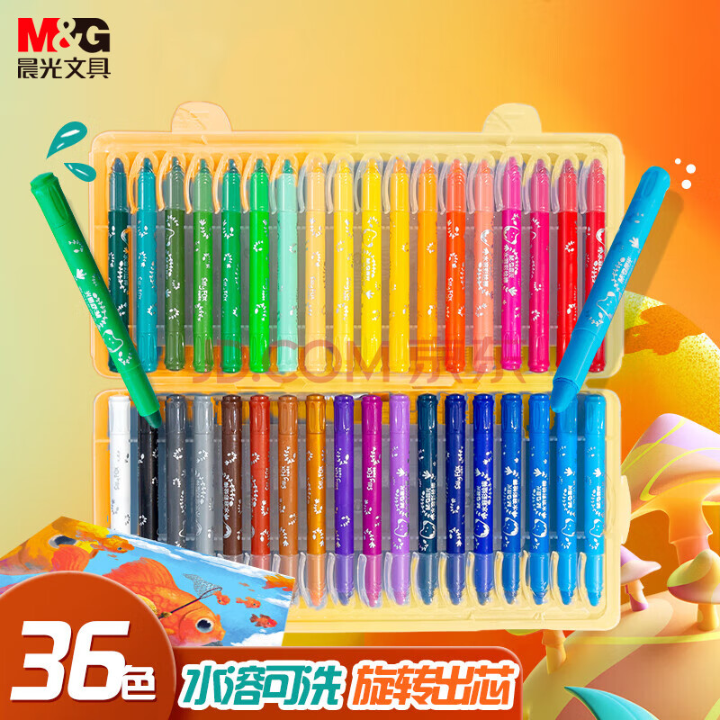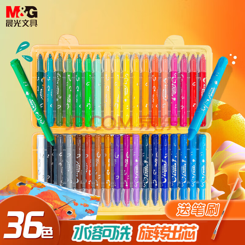 商品相册:晨光(M&G)文具36色水溶性油画棒儿童可水洗不脏手彩绘棒大容量炫彩棒小狐希里蜡笔生日开学礼物第