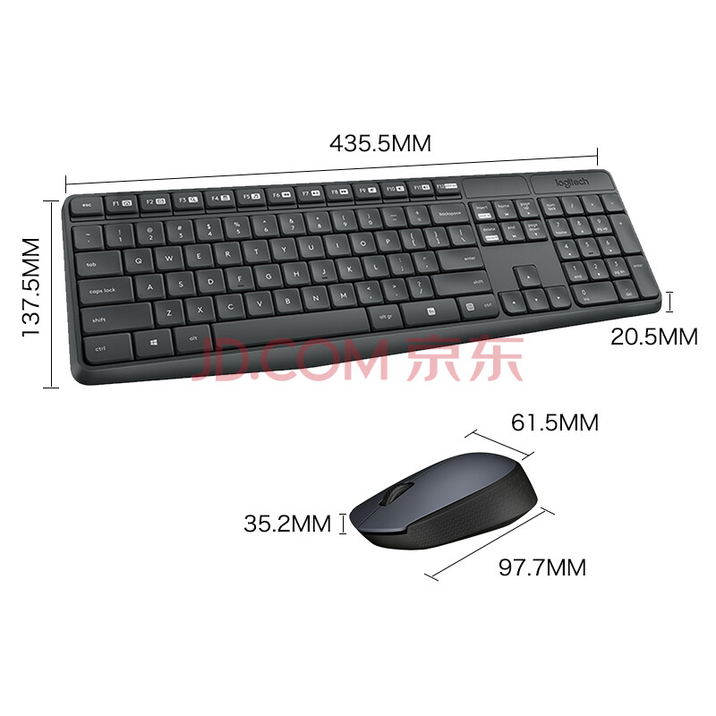 商品相册:罗技(Logitech)MK235 键鼠套装 无线键鼠套装 办公键鼠套装 防泼溅防指纹 全尺寸 带无线2.4G接收器 黑第