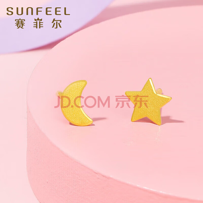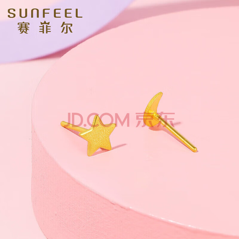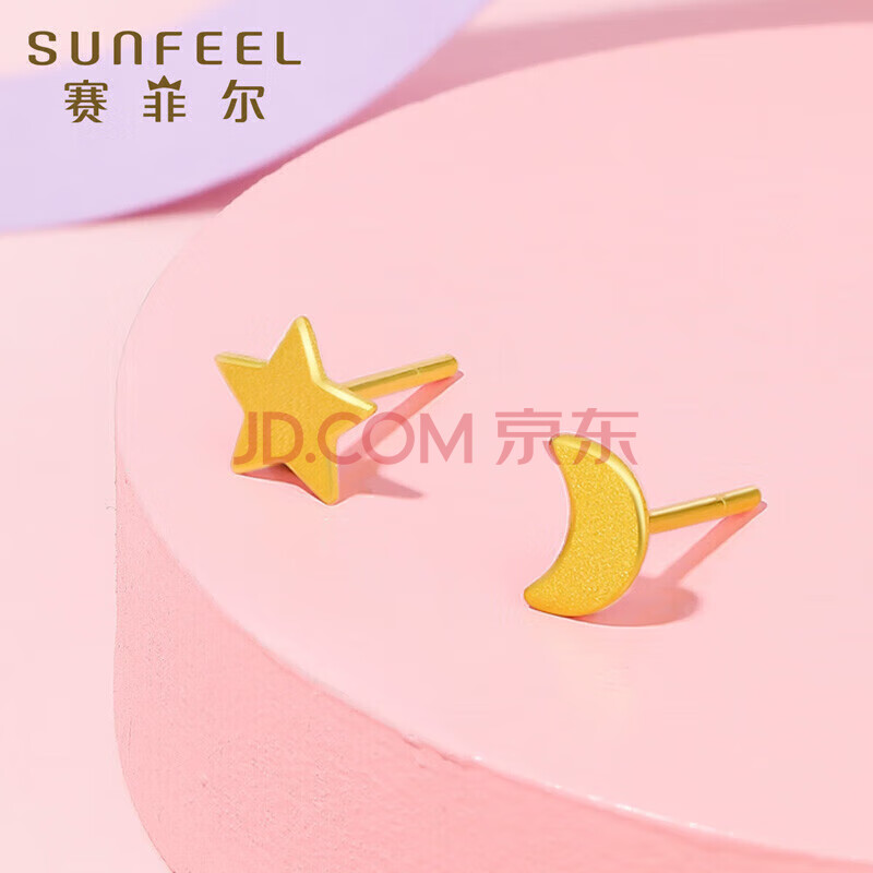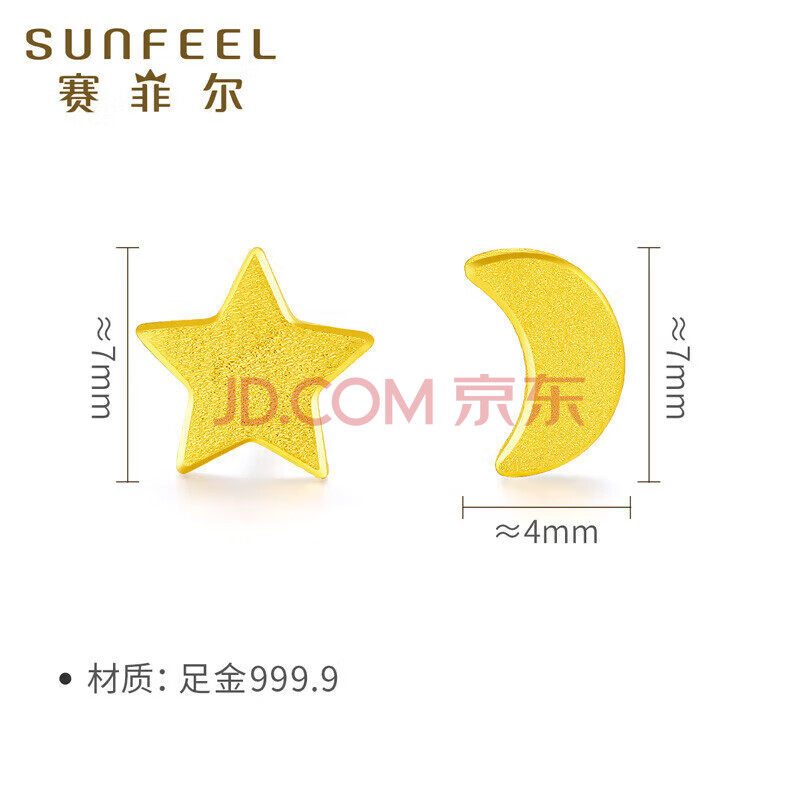 商品相册:赛菲尔 黄金耳钉足金999.9星星月亮卡通耳钉一对约0.9克第1张/共7
