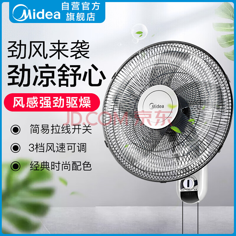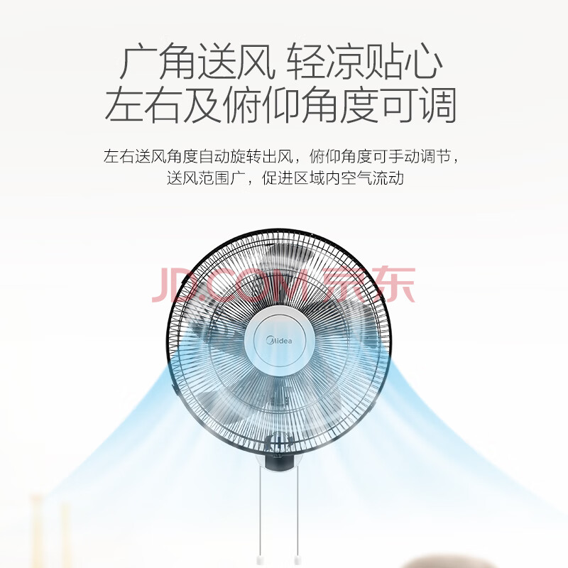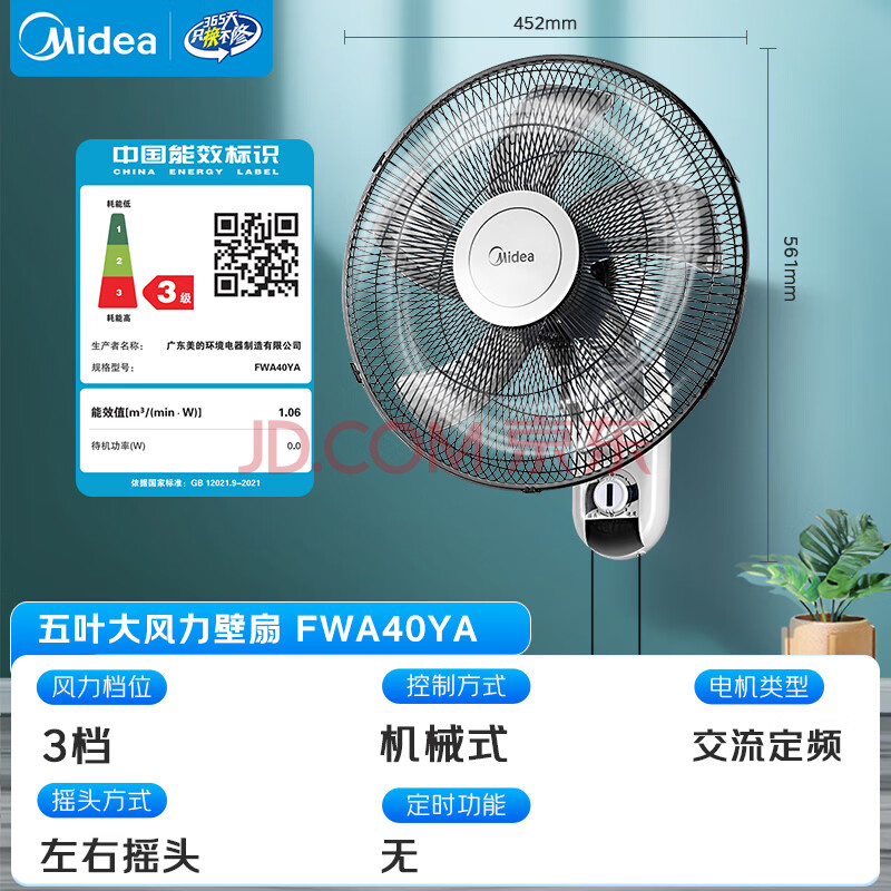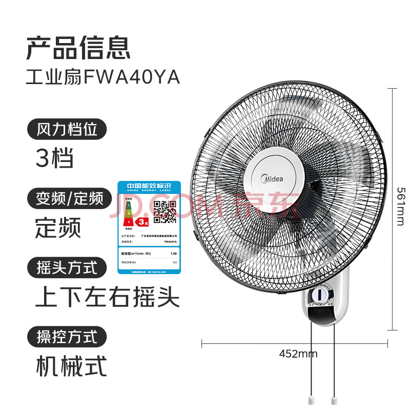商品相册:美的(Midea)【五叶大风力】壁扇/家用空气通风电风扇/节能低噪风扇/工厂通风吊扇/商用款广角摇头风扇 FWA40YA第