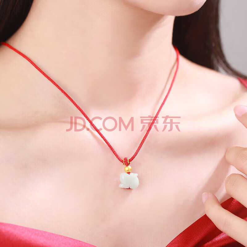 商品相册:蒂蔻(Tico)翡翠生肖兔古法金珠吊坠编织红绳本命年项链生日礼物第