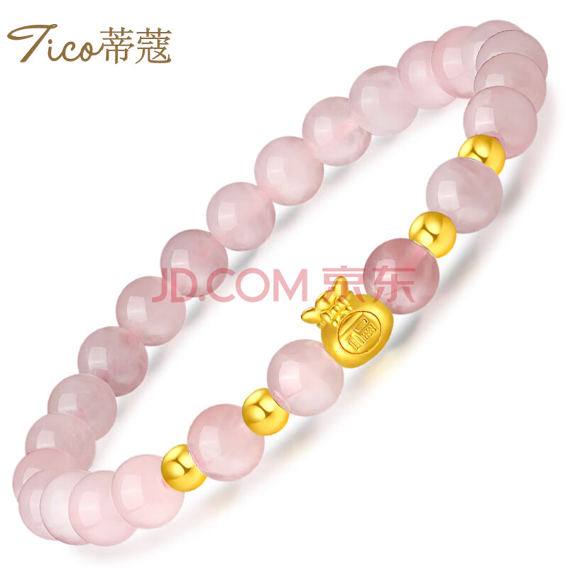 商品相册:蒂蔻(Tico)代代有福福袋足金黄金转运珠手链女3D硬金珠粉水晶手串生日礼物第