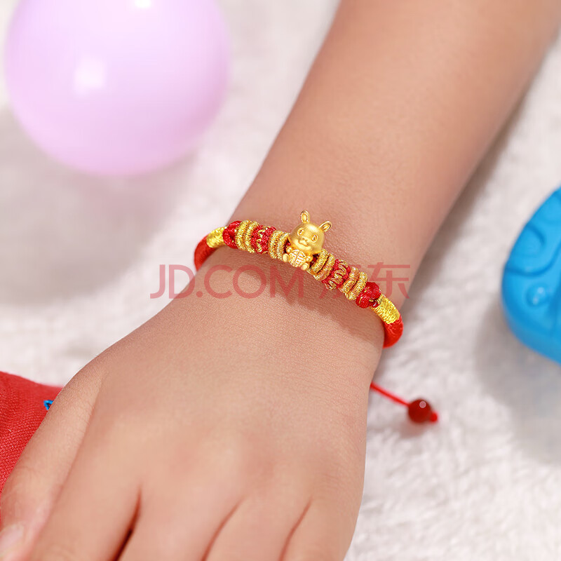 商品相册:蒂蔻(Tico)足金福兔黄金转运珠手链小孩款3D硬金兔生肖红绳本命年儿童金饰第