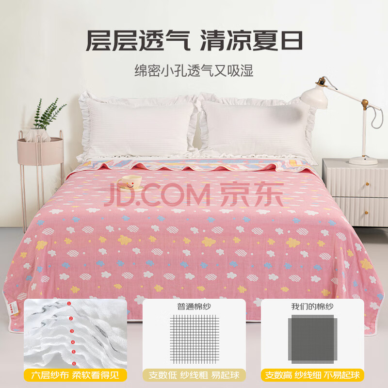 商品相册:恒源祥纯棉纱布毛巾被夏凉空调毯子全棉三层单人毯子被午睡毯150×200cm第