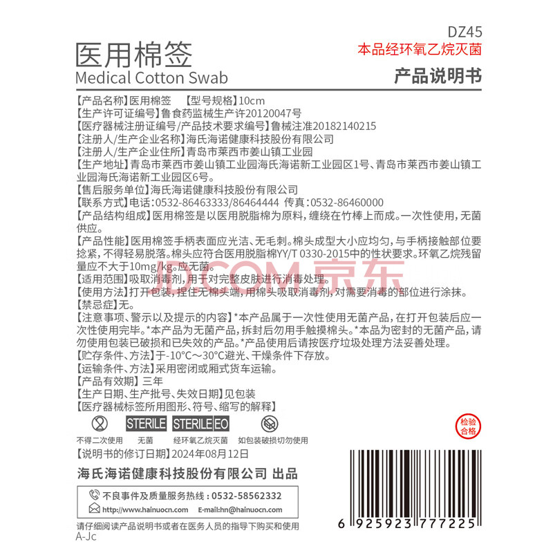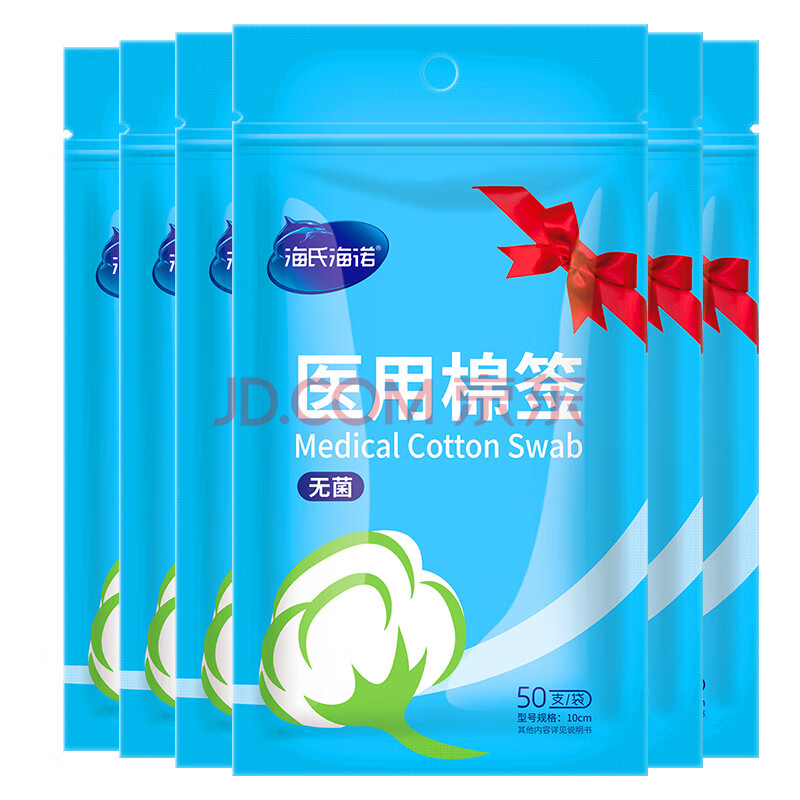 商品相册:海氏海诺医用棉签 无菌消毒棉签棒 塑封口消毒护理成人婴儿单头竹棒大头第