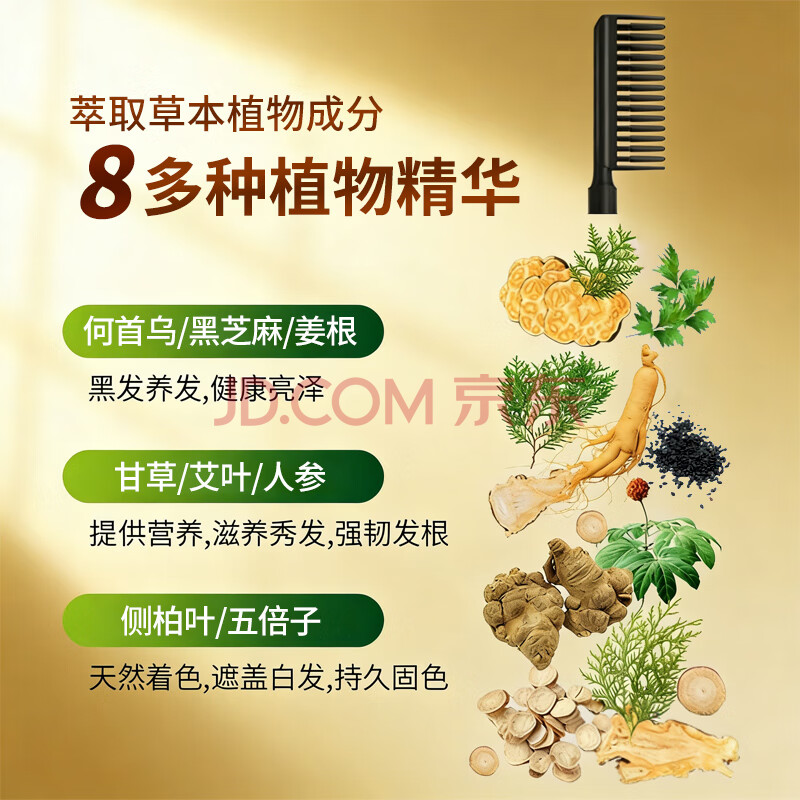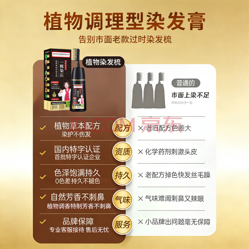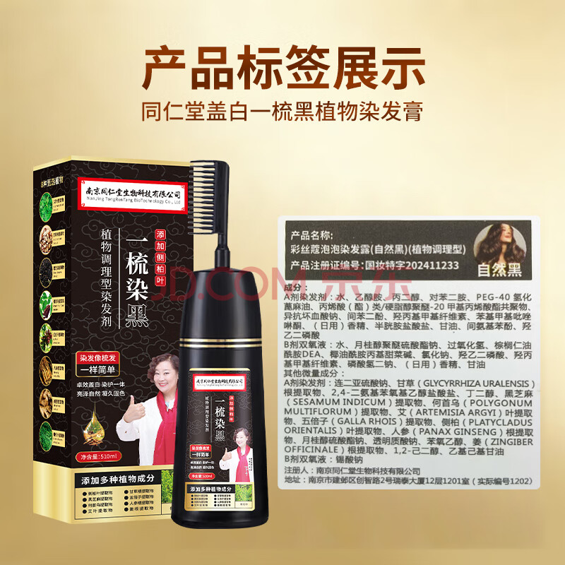 商品相册:同仁堂染发膏剂一梳黑盖白纯天然植物无刺激不沾头皮男女士专用染发黑色第