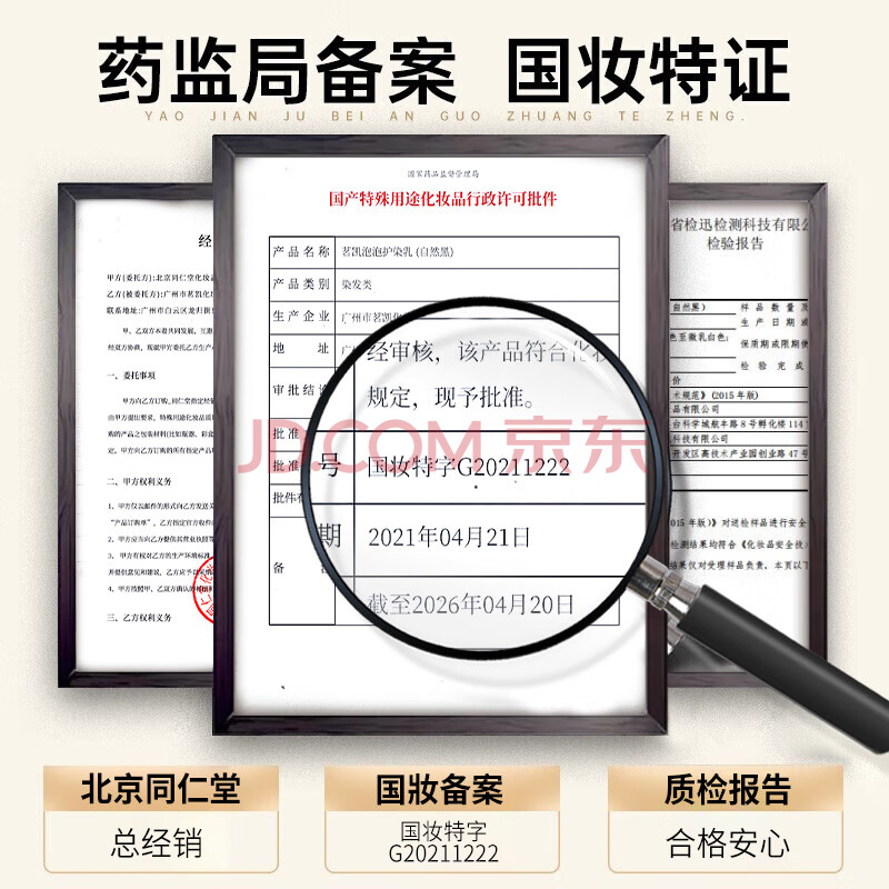 商品相册:同仁堂染发膏天然植物纯自然黑不沾头皮无刺激男女士盖白发染发剂2盒装第