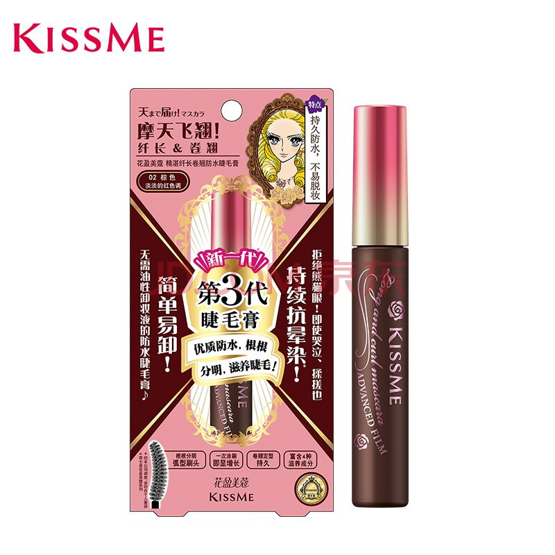 商品相册:奇士美(kiss me)花盈美蔻精湛纤长卷翘防水睫毛膏6g 02棕色(三代 不易晕染)第
