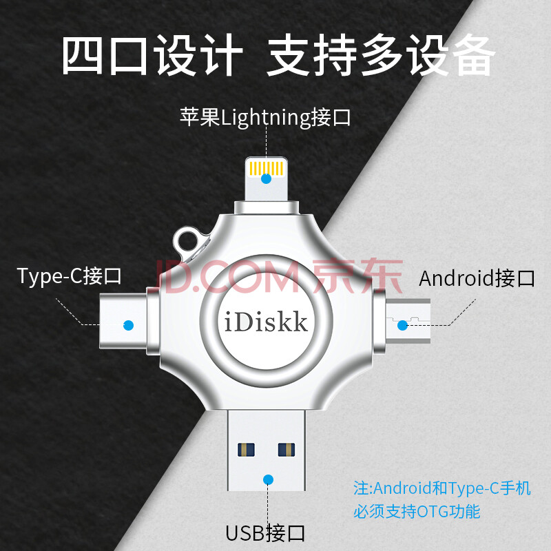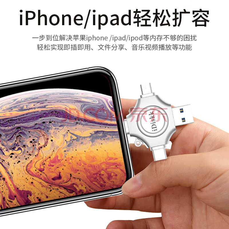 商品相册:iDiskk128GB MFi认证四合一手机U盘type-c电脑直连存储大容量适用华为安卓苹果15iPhone16照片备份优盘第