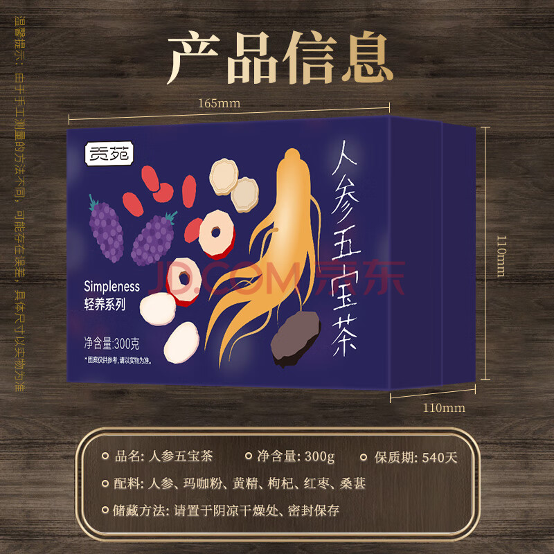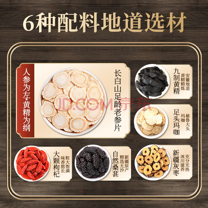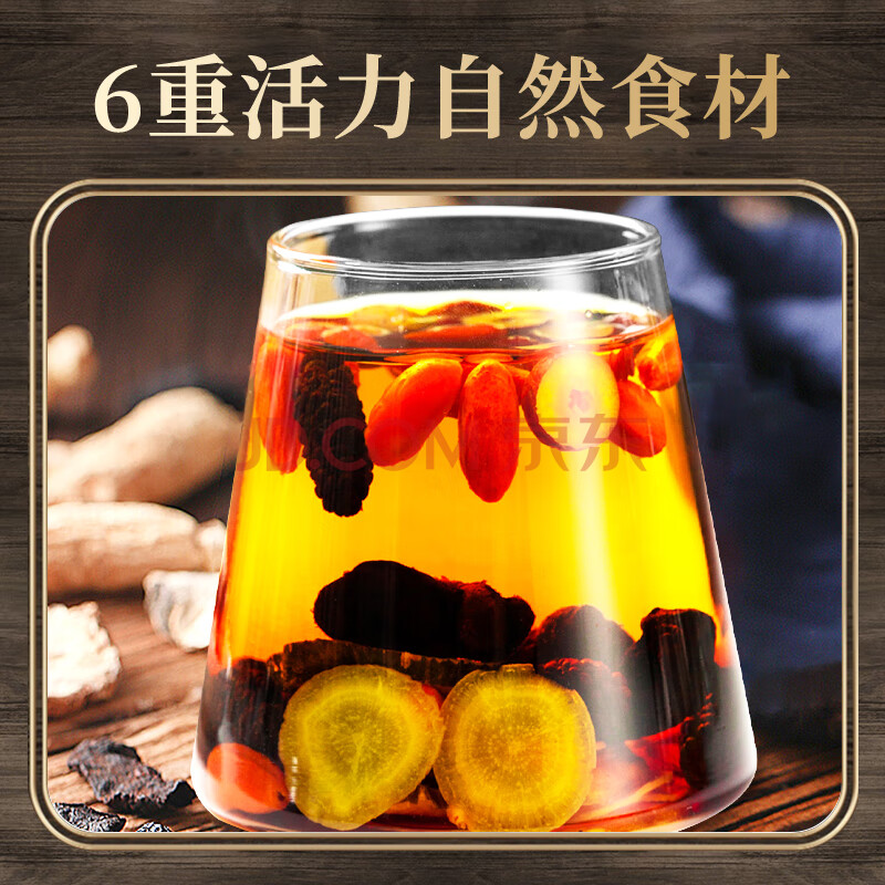 商品相册:贡苑 人参黄精五宝茶300g桑葚枸杞红枣玛咖茶包男人滋补阳男性养生茶第