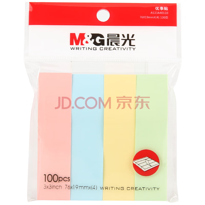 商品相册:晨光(M&G)文具彩色小号索引便利贴标签贴便签贴纸粘性小条标记书签贴4色76*19mmYS-13办公用品第