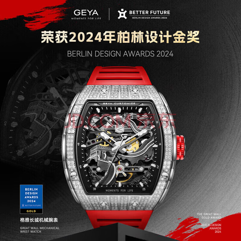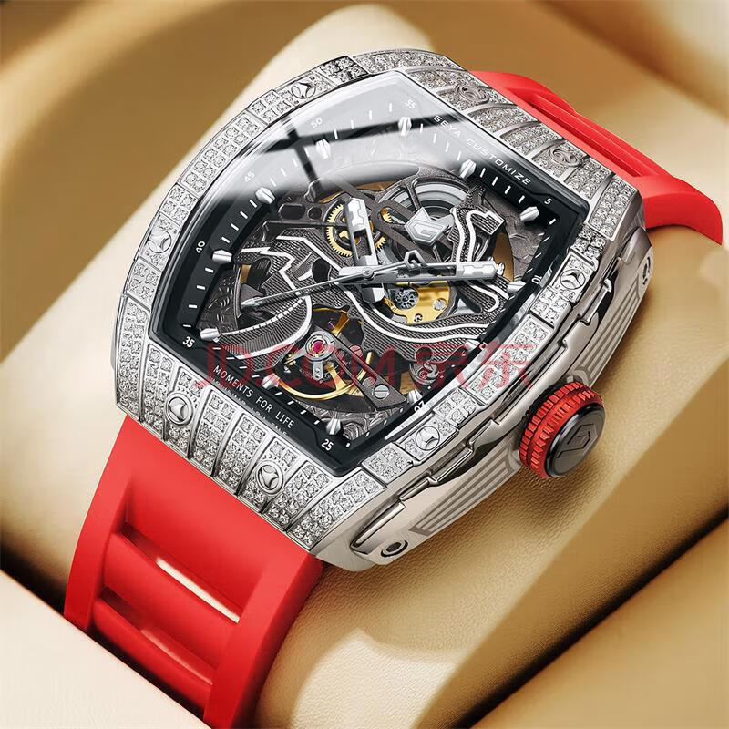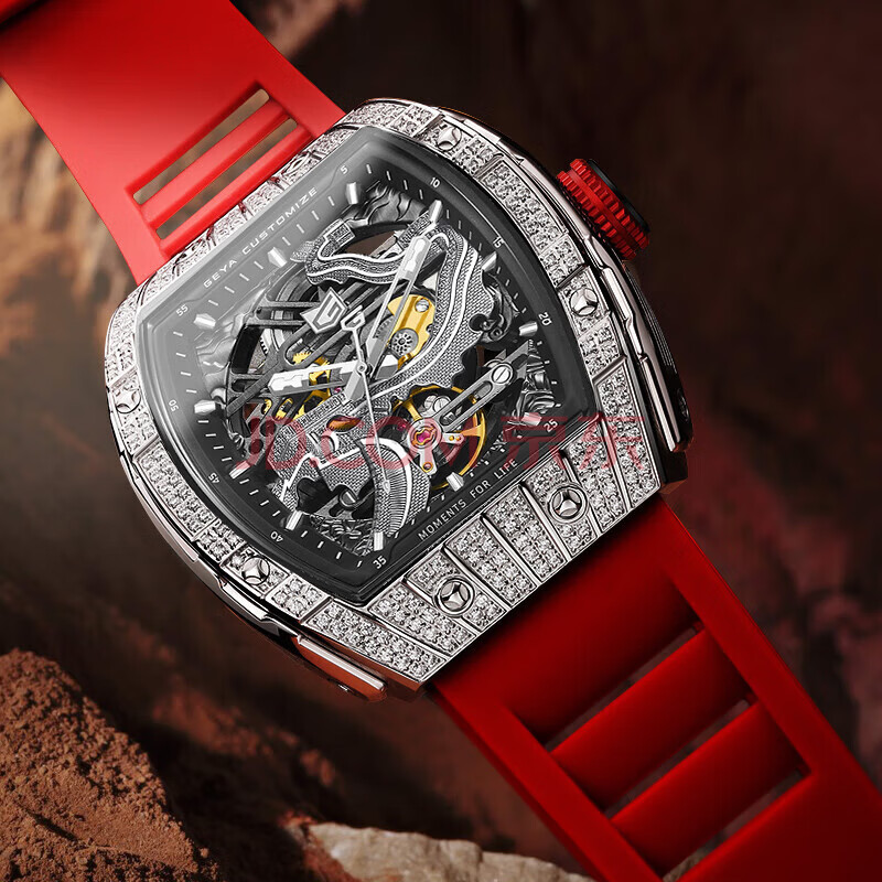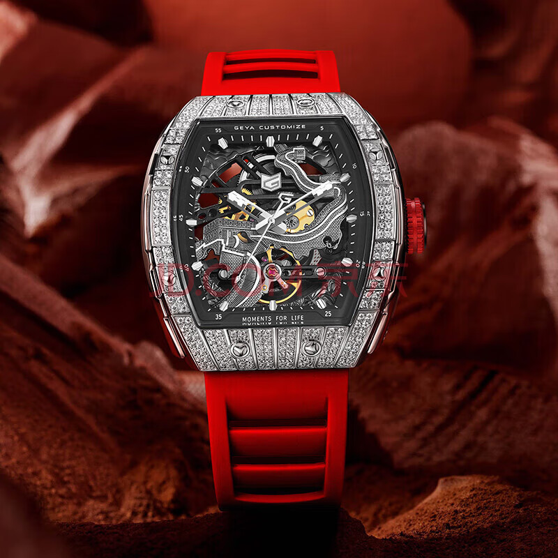 商品相册:格雅(GEYA)国表长城系列 品牌手表男士酒桶镂空全自动机械男表 送男友第