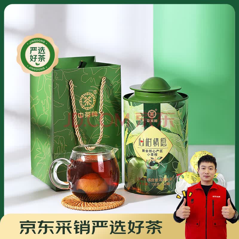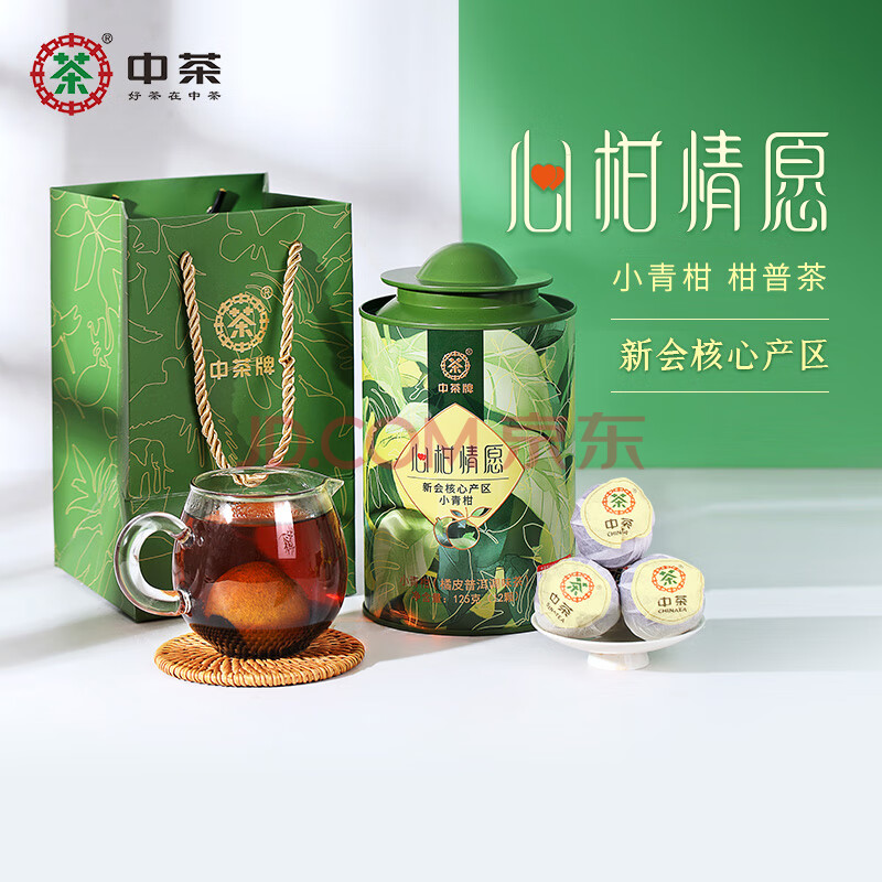 商品相册:中茶普洱茶小青柑心柑情愿小青柑新会青柑熟普125g罐装礼袋送礼第
