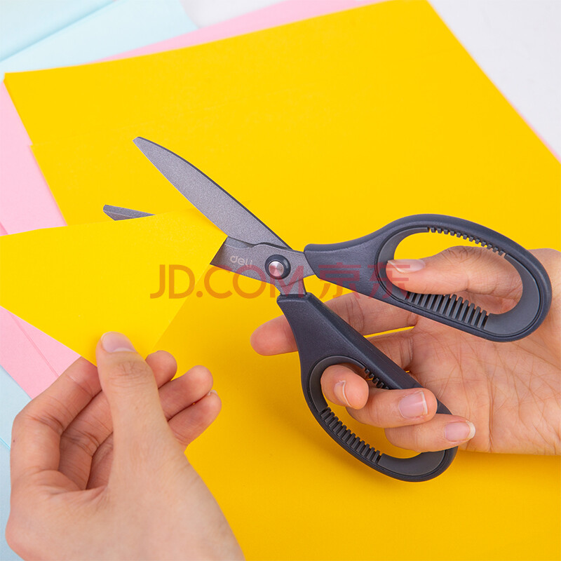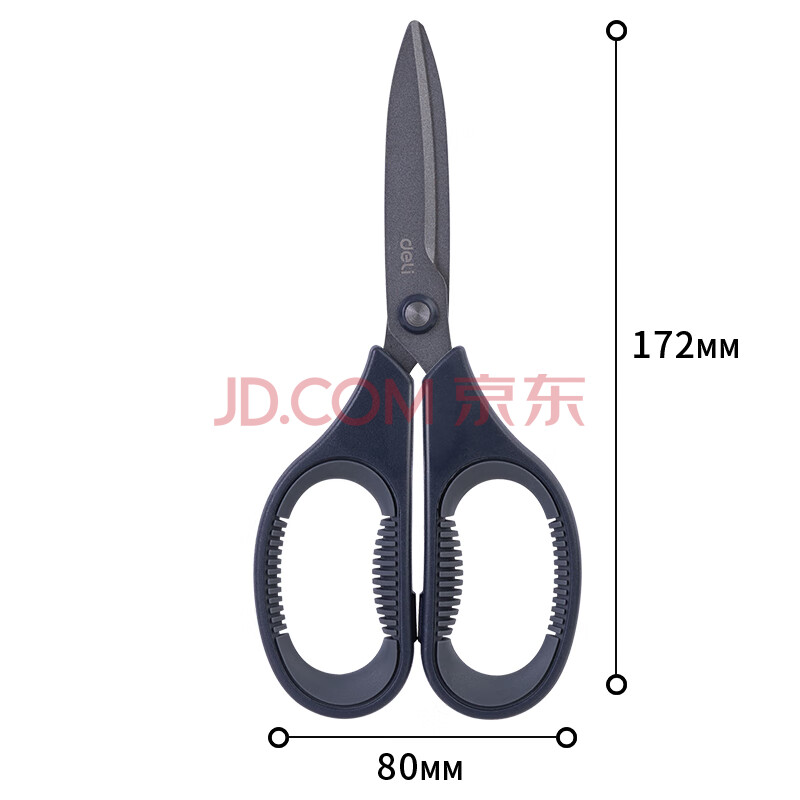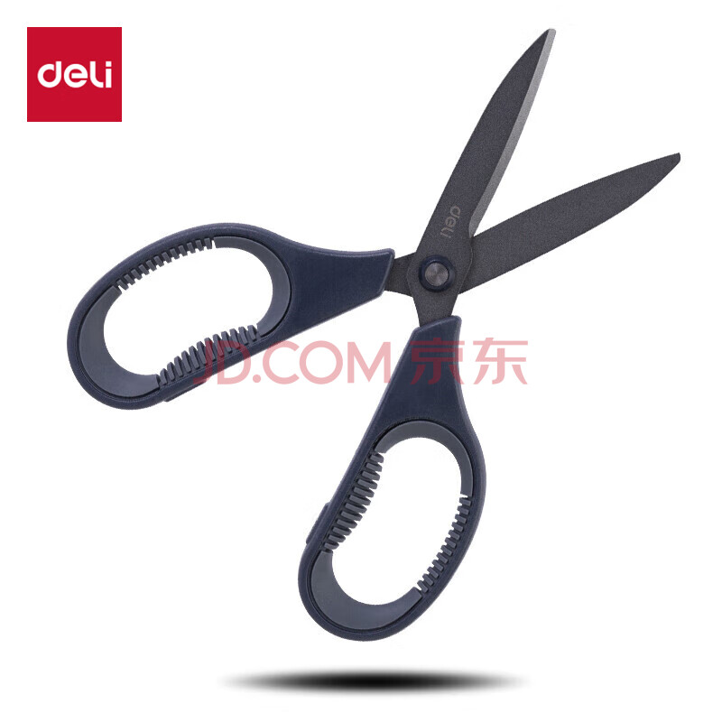 商品相册:得力(deli)特氟龙防粘防锈办公居家剪刀 弧形剪片省力剪子 灰色77754第