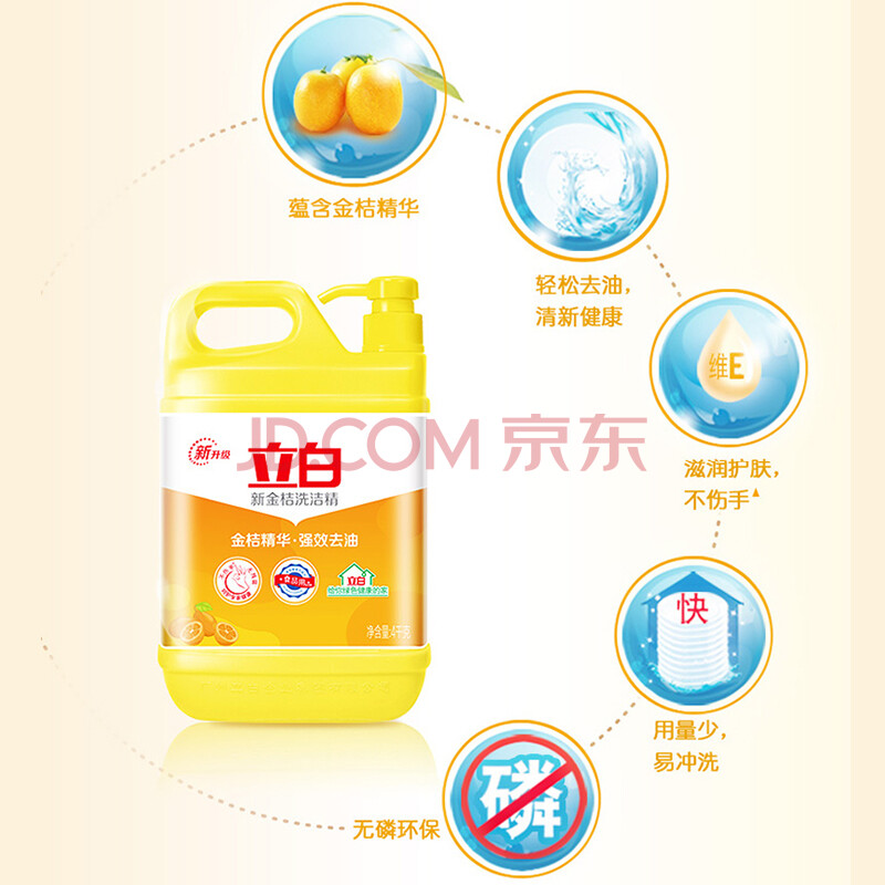 商品相册:立白新金桔大桶洗洁精4kgA类食品用除味去油去腥商用洗碗液洗涤灵第