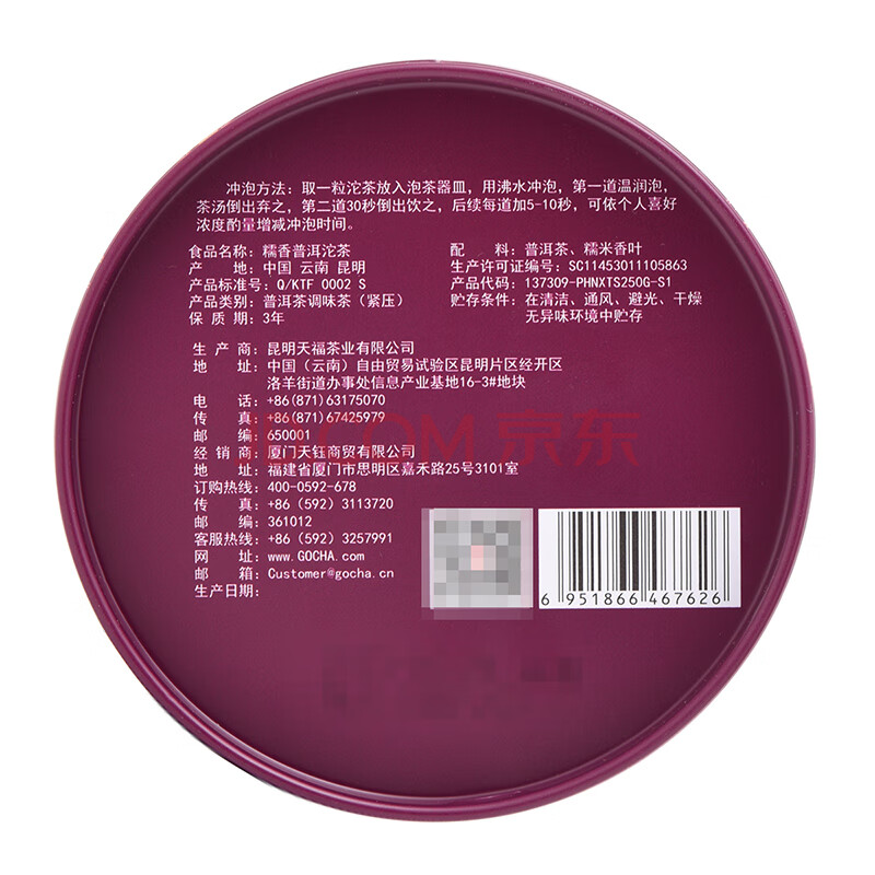商品相册:天福茗茶普洱茶 糯米香普洱熟茶小沱茶浓香型250g罐装茶叶第