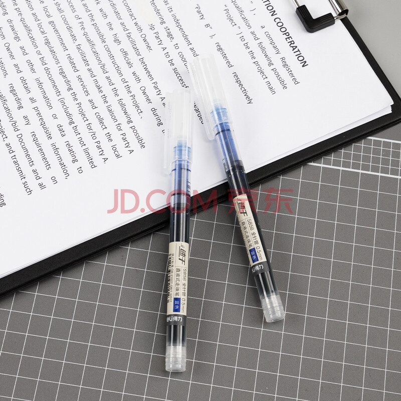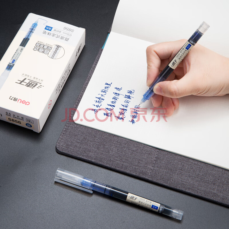 商品相册:得力(deli)(deli)速干直液笔走珠签字笔 学生办公中性笔 ins无印简约风 0.5mm全针管 蓝色12支/盒S856第