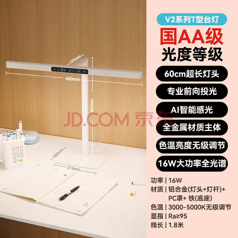 商品相册:雷士(NVC)国AA级护眼台灯前投光设计学生学习阅读专用全光谱防蓝光无频闪V2第