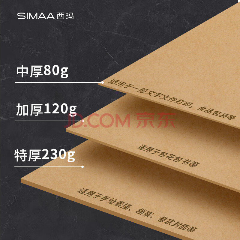 商品相册:西玛(SIMAA)A4牛皮纸150g加厚 牛皮纸封面牛皮打印纸 凭证封面纸 牛皮卡纸书皮纸包装纸绘图绘画纸 100张6525第