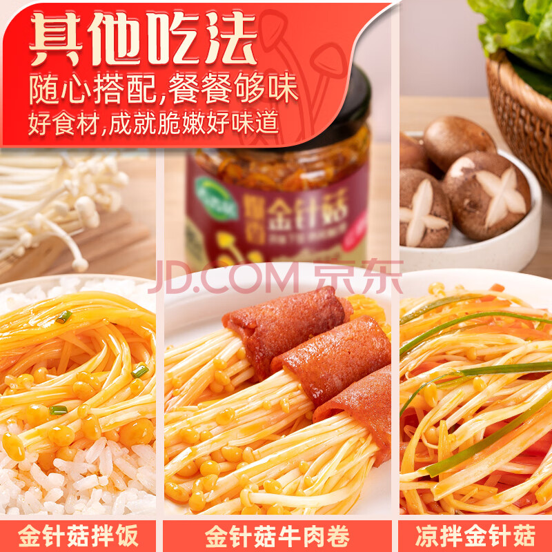 商品相册:吉香居爆香金针菇 红油拌饭拌面下饭菜榨菜开味零食180g即食第